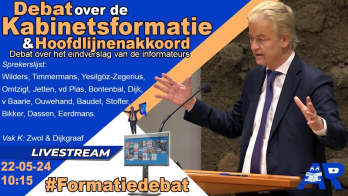 De Tweede Kamer debatteert op woensdag 22 mei over het eindverslag van de informateurs Richard van Zwol en Elbert Dijkgraaf dat zij op 16 mei aan Kamervoorzitter Martin Bosma hebben aangeboden. Dit verslag bevat ook het hoofdlijnenakkoord dat de fracties van PVV, VVD, NSC en BBB hebben gesloten, en een financiële bijlage.