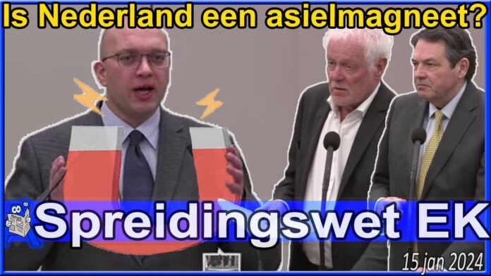 Alexander van Hattem (PVV) vraagt zich af: ‘is Nederland de asielmagneet van Europe geworden?’ Inclusief interrupties Peter Nicolaï (PvdD) en Rik Janssen (SP), bij het debat over de Spreidingswet Eerste Kamer.