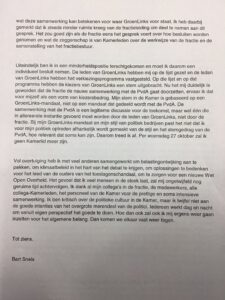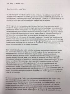 Lees de hele brief van Bart Snels aan Vera Bergkamp hieronder: