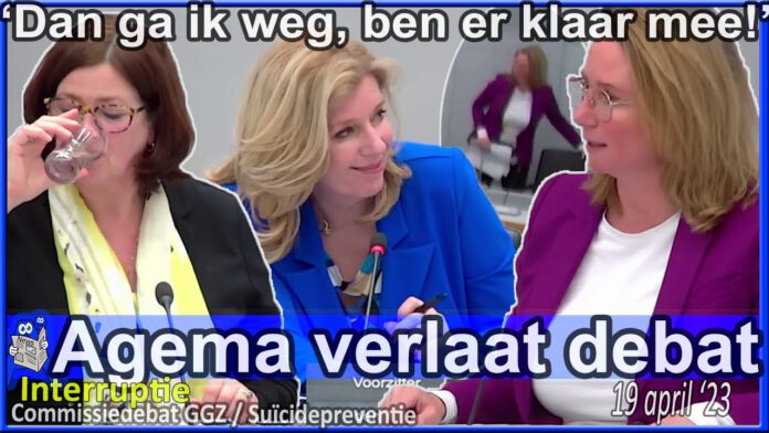 Interruptiedebat tussen Fleur Agema (PVV) & Minister Helder (LZS), waar Agema klaar is met het uitblijven van concrete beantwoording over bekostiging van de Cruciale GGZ en deswege de zaal verlaat wanneer Voorzitter Den Haan stelt dat Agema geen interrupties meer over heeft. Wanneer Agema later terugkeert volgt er nog een laatste, maar vruchteloze poging tot gewenste uitleg van minister Helder – Commissiedebat GGZ, Tweede Kamer.