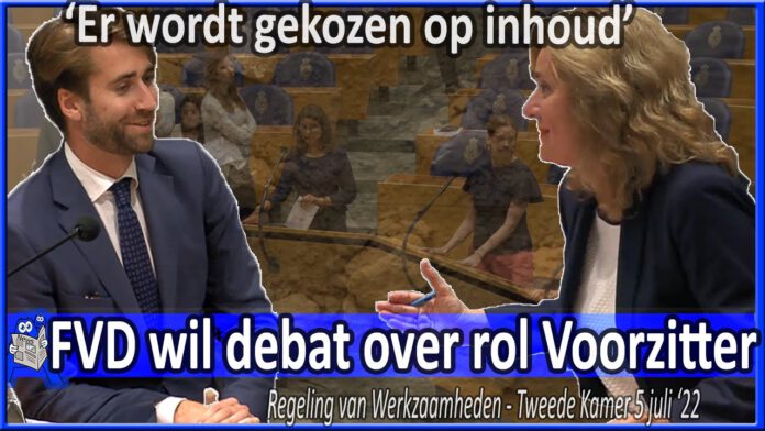 Frederik Jansen wil een debat over de rol van de Kamervoorzitter ‘Wij hebben toch het gevoel dat steeds vaker de inhoudelijke uitwisseling van ideeën niet kan plaatsvinden in de zaal omdat er toch inhoudelijk wordt gestuurd op wat er wel en niet gezegd mag worden’. Geert Wilders vraagt Vera Bergkamp om een brief waarin ze reflecteert op de kritiek. Bergkamp