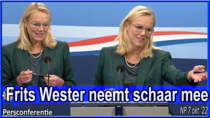 Frits Wester heeft een schaar meegenomen naar de wekelijkse persconferentie, vraagt of vicepremier Sigrid Kaag een stuk haar af wil knippen. – Een aantal politici hebben op camera een lok uit hun haren geknipt, ze doen dat ‘om te laten zien dat ze de vrouwen in Iran steunen’.