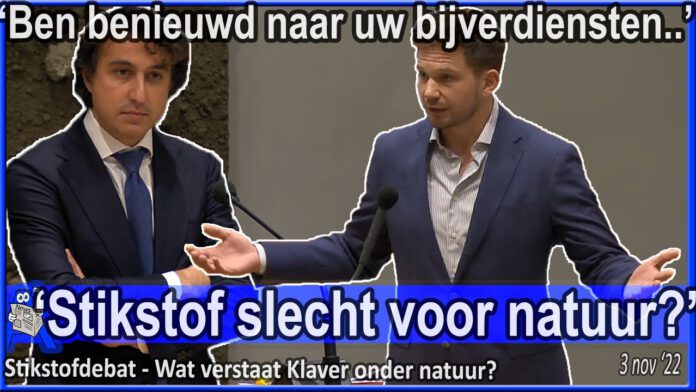 Gideon van Meijeren (FVD) vraagt Jesse Klaver (GL) wat hij verstaat onder ‘Natuur’ waarop Klaver reageert benieuwd te zijn naar de bijverdiensten van Van Meijeren – Stikstofdebat.