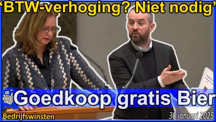 Jimmy Dijk (SP) is fel tegen de voorgenomen BTW-verhoging van 21 naar 21.3%. In een interruptiedebat met Aukje de Vries (VVD) legt Van Dijk een SP-voorstel voor om de voorgenomen BTW-verhoging van de coalitie tegen te gaan – bij het debat over de schreefgroei tussen bedrijfswinsten en lonen van werknemers in de Tweede Kamer.