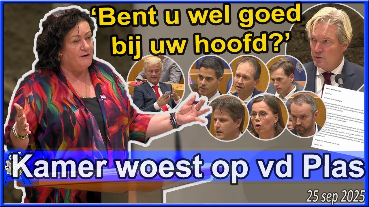 Caroline van der Plas (BBB) dient een motie in waarin zij het demissionaire Kabinet vraagt om opnieuw te onderzoeken of het mogelijk is een tijdelijke asielstop in te voeren middels staatsnoodrecht, waarna zo’n beetje de hele oppositie woedend naar voren stormt om er schande van te spreken dat Van der Plas deze motie notabene bij het debat over een uit de hand gelopen rechtse demonstratie durft in te dienen. Men stelt dat zij de relschoppers hiermee juist te belonen voor het recente geweld – bij het debat over de demonstratie van Els Rechts op het Malieveld in Den Haag.