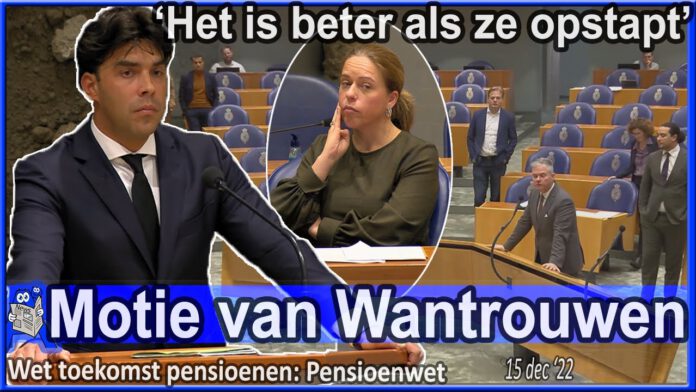 Léon de Jong (PVV) dient Motie van Wantrouwen in tegen Carola Schouten (Minister voor Armoedebeleid, Participatie en Pensioenen): ‘Het is beter als deze minister direct opstapt, ze breekt de pensioenbelangen compleet af, de gevolgen zullen nog generaties voelbaar zijn. Het zal weer zorgen voor een nieuw schandaal, dit keer het pensioenschandaal’ – Debat over het nieuwe pensioenstelsel/ de nieuwe Pensioenwet – Tweede Kamer pensioendebat.