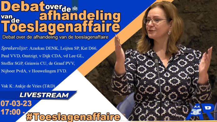 De Tweede Kamer debatteert op 7 maart over de afhandeling van de toeslagenaffaire. Staatssecretaris voor Toeslagen en Douane, Aukje de Vries, komt hiervoor naar de Kamer.