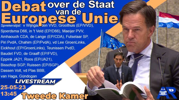 De Tweede Kamer debatteert op 25 mei over de de staat van de Europese Unie, Mark Rutte & Wopke Hoekstra komen hiervoor naar de Kamer.