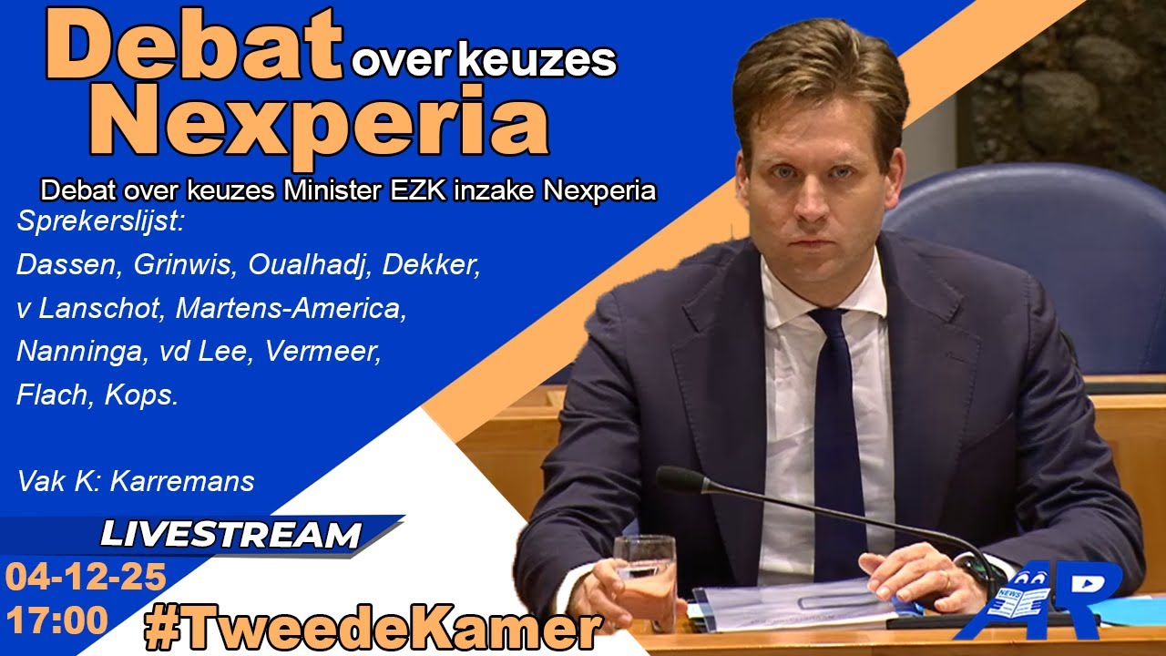 De Tweede Kamer debatteert op donderdag 4 december over het beleid en de keuzes van de minister van Economische Zaken omtrent Nexperia.