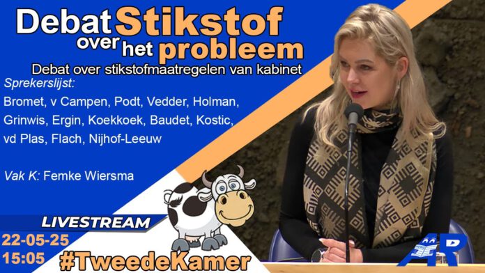 De Tweede Kamer debatteert op donderdag 22 mei over het plan van een ministeriële commissie om Nederland van het ‘stikstofslot’ te halen. Minister Femke Wiersma van Landbouw, Visserij, Voedselzekerheid en Natuur komt hiervoor naar de Kamer.