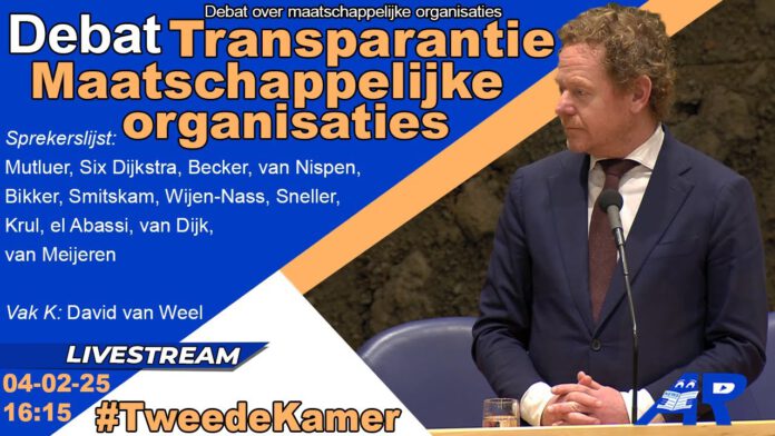 De Tweede Kamer debatteert over transparantie van donaties voor maatschappelijke organisaties, Minister David van Weel (J&V) komt hiervoor naar de Kamer.