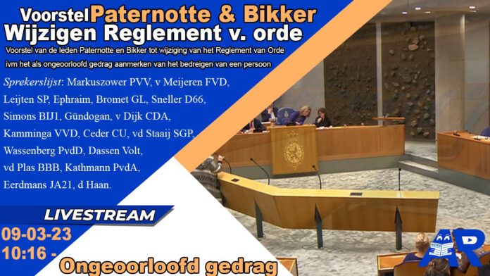 Live: Voorstel van de leden Paternotte en Bikker tot wijziging van het Reglement van Orde in verband met het als ongeoorloofd gedrag aanmerken van het bedreigen van een persoon (36037) (antwoord 1e termijn + rest) – Tweede Kamer.