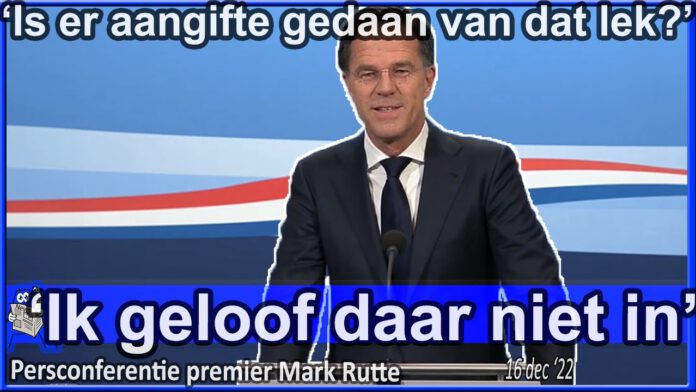 Merel Ek (SBS) vraagt Mark Rutte (Minister-president) of er aangifte is gedaan van de lekken uit het Kabinet. – Persconferentie over de Ministerraad 16 december ’22.