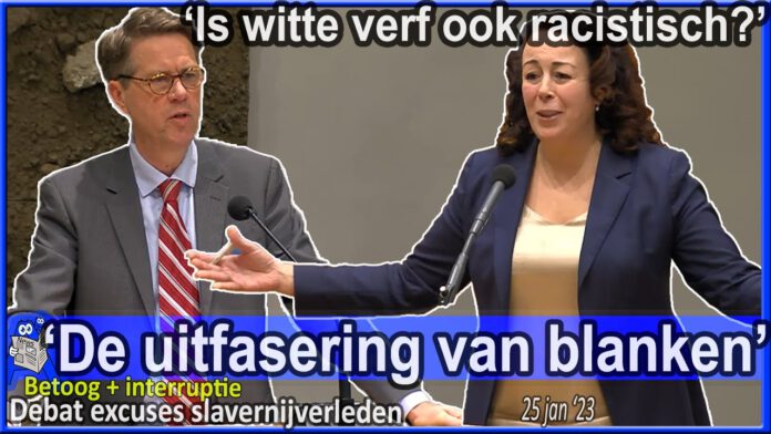 Betoog Martin Bosma (PVV) bij debat over de excuses voor het Nederlandse slavernijverleden. ‘De uitfasering van blanken: D66 ziet te veel witte gezichten op ministeries en de PvdA wil Den Haag ontwitten’ – inclusief interruptie Salima Belhaj (D66), Tweede Kamer.