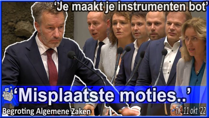 Ontstemming in de Tweede Kamer nadat een deel van de door Wybren van Haga ingediende moties geen betrekking zou hebben op de behandelde begrotingen, of geen onderdeel van de beraadslagingen zijn geweest. – Begroting AZ / Koning.