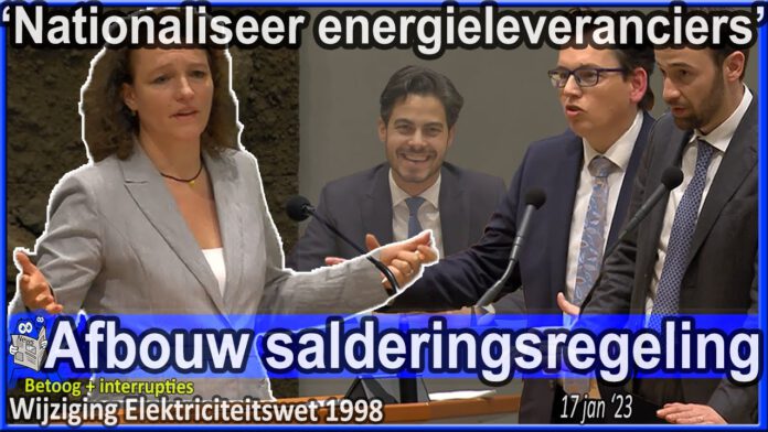 Betoog Renske Leijten (SP) Wijziging van de Elektriciteitswet 1998 (afbouw salderingsregeling), pleit o.a. voor nationalisering energieleveranciers: ‘Laat de zonnepanelen werken voor iedereen, zonder tussenpartij met megawinsten’ – Tweede Kamer.