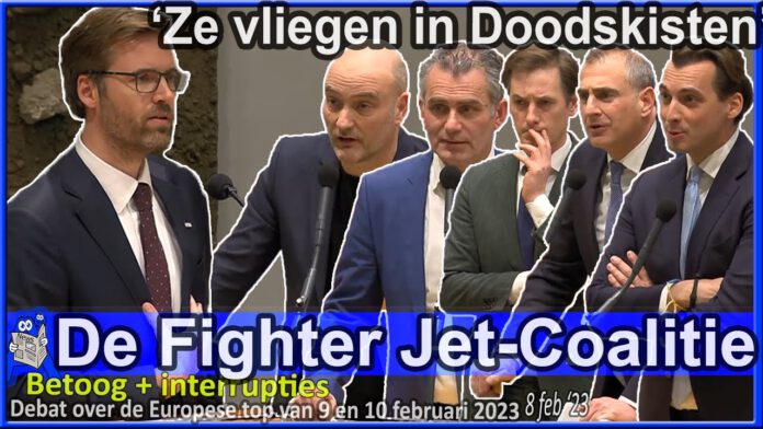 Betoog Sjoerd Sjoerdsma (D66), vertelt over zijn werkbezoek aan Oekraïne en pleit voor een samen met de Britten en Denen op te richten Fighter Jet-Coalitie. Sjoerdsma wil besluitvorming over levering niet afwachten en pleit ervoor om alvast te starten met de training van Oekraïense F16-piloten – Debat over de Europese top van 9 & 10 feb, Tweede Kamer.