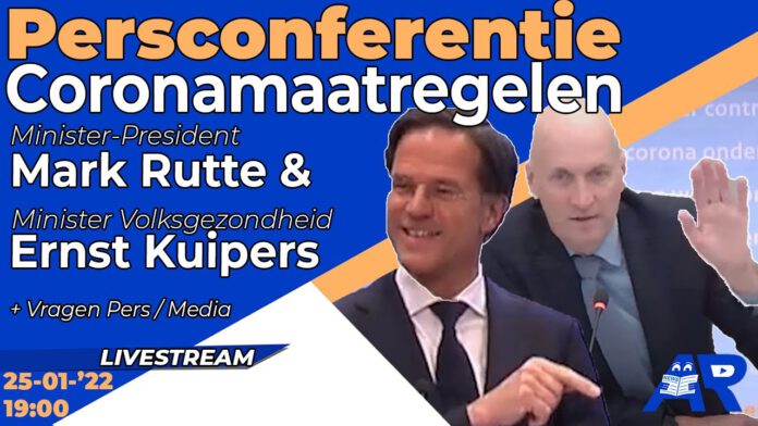 Live: Persconferentie Coronamaatregelen door Minister-President Mark Rutte en Minister van volksgezondheid Ernst Kuipers van 25 januari 2022.